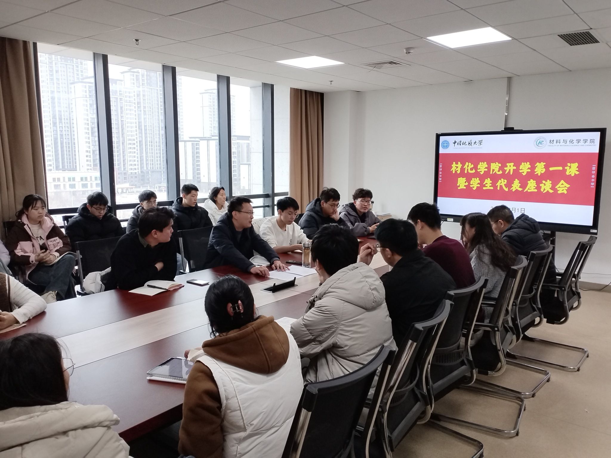 加强思政引领,厚植爱国情怀。学院紧紧围绕学生思想政治引导工作,以“开学第一课”为重点,组织学生深入学习领会两会精神和攀登精神,学议结合,强化学生思想引领;认真组织开展新学期“开学第一课”,组织全体学生在会议室、教室、宿舍、研究生工作室深入学习《为国攀登》思政大课,召开专题座谈会,共学共议攀登精神;组织开展“两会”精神学习分享交流会,学院党委副书记白振洋领学全国“两会”精神,结合教育强国建设及创新拔尖人才培养的内在要求,引导学生筑牢思想之基,聚焦专业,加强实践。