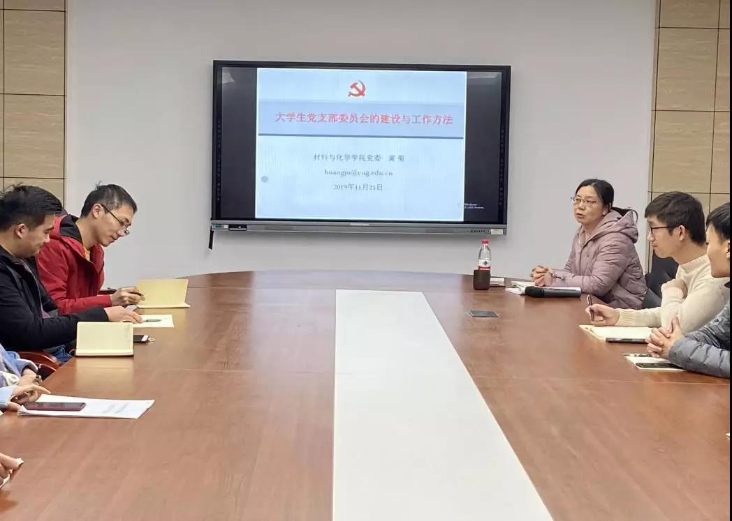 11月25日中午12:30,在未来城校区材化楼317举办williamhill英国中文党员骨干培训。学院党委书记黄菊讲授题为“大学生党的支部委员会的职责与工作方法”的专题党课。