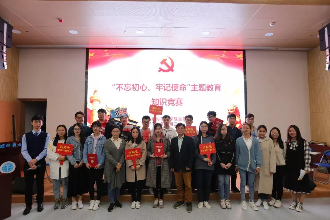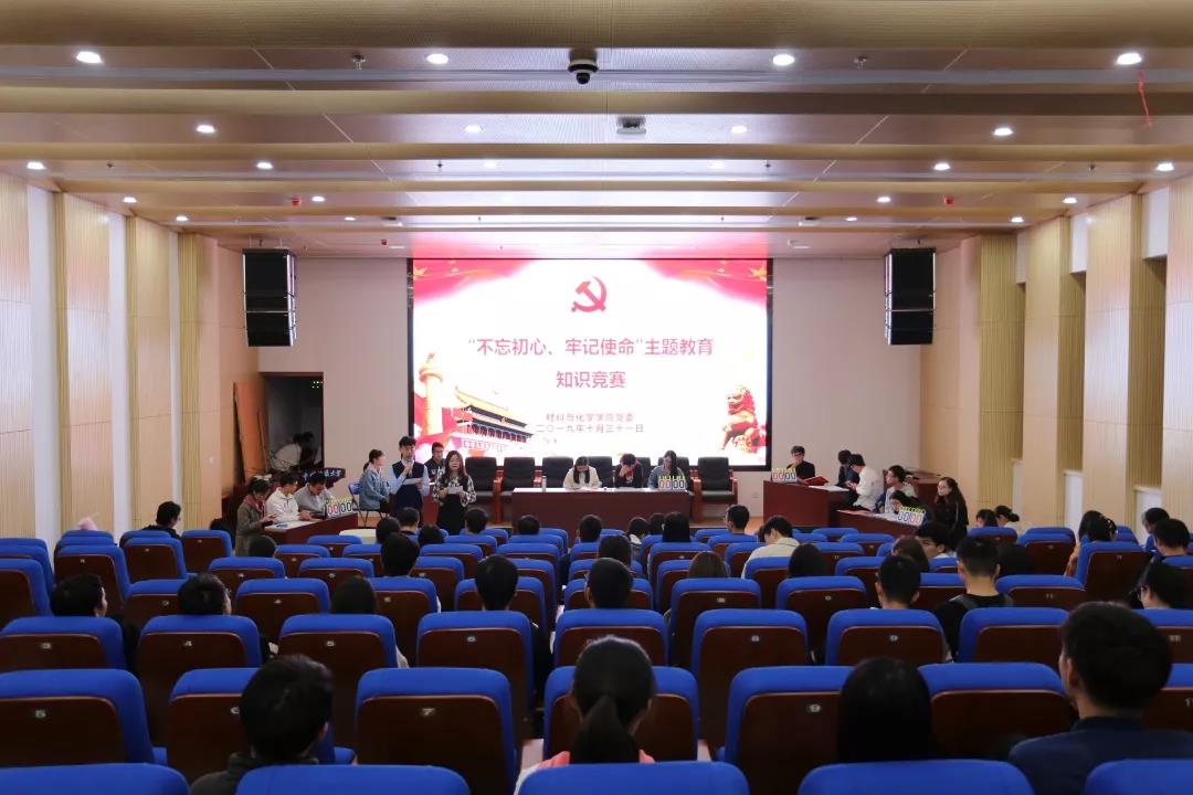 为更好推进“不忘初心、牢记使命”主题教育开展,形成以赛促学,比学赶超的良好学习氛围,2019年10月31日晚,由williamhill英国中文党建办公室举办的“不忘初心、牢记使命”主题教育知识竞赛在材化楼110举行。出席竞赛的嘉宾有williamhill英国中文党委副书记余江涛,本科党支部书记吴迪、陈文婷、唐伟、王博优老师和学生党支部书记、学生党员、入党积极分子。本次知识竞赛以习近平新时代中国特色社会主义思想、《中国共产党章程》以及“不忘初心、牢记使命”应知应会一百题等为考察内容,五支代表队须通过必答题、抢答题和风险题三类题型的考察,依照总分排名决出最后的奖项。