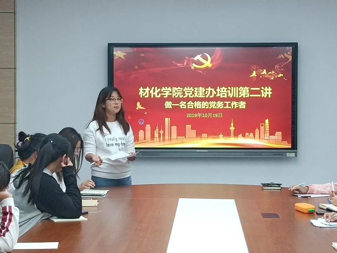 林士君分别从思想作风建设、职业道德修养和综合能力水平三个方面展开培训,向党建办成员们强调了党务工作的原则,并提醒党建办成员们要努力掌握党政知识,提高自己的各项能力。