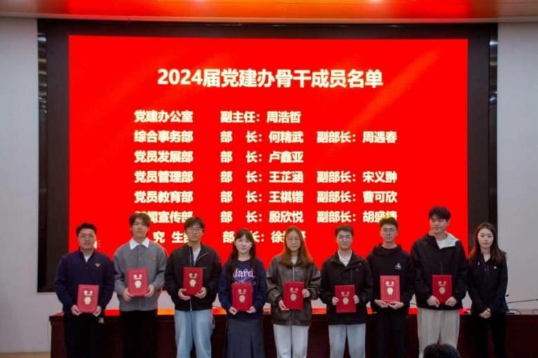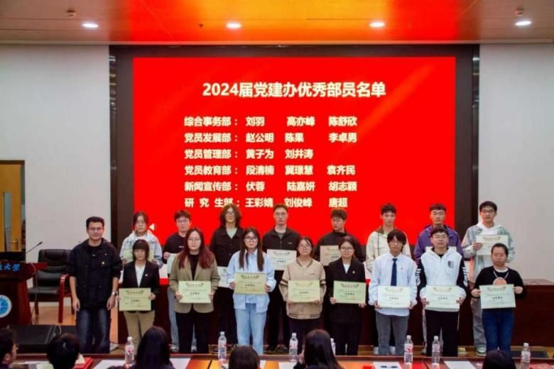 聘书及奖状颁发仪式中,黄嫣然为2024届党建办骨干成员颁发聘书,以此表彰他们过去一年在学院党建工作中作出的重要贡献。陈雨蛟为表现突出的优秀部员颁发荣誉证书,鼓励全体成员以先进为榜样,践行责任担当。