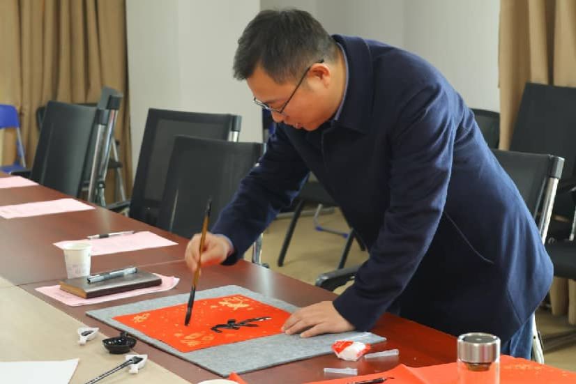 述职结束后,梁本哲与师生一同挥毫书写“福”字,以笔墨传递对全院师生的新年美好祝愿。