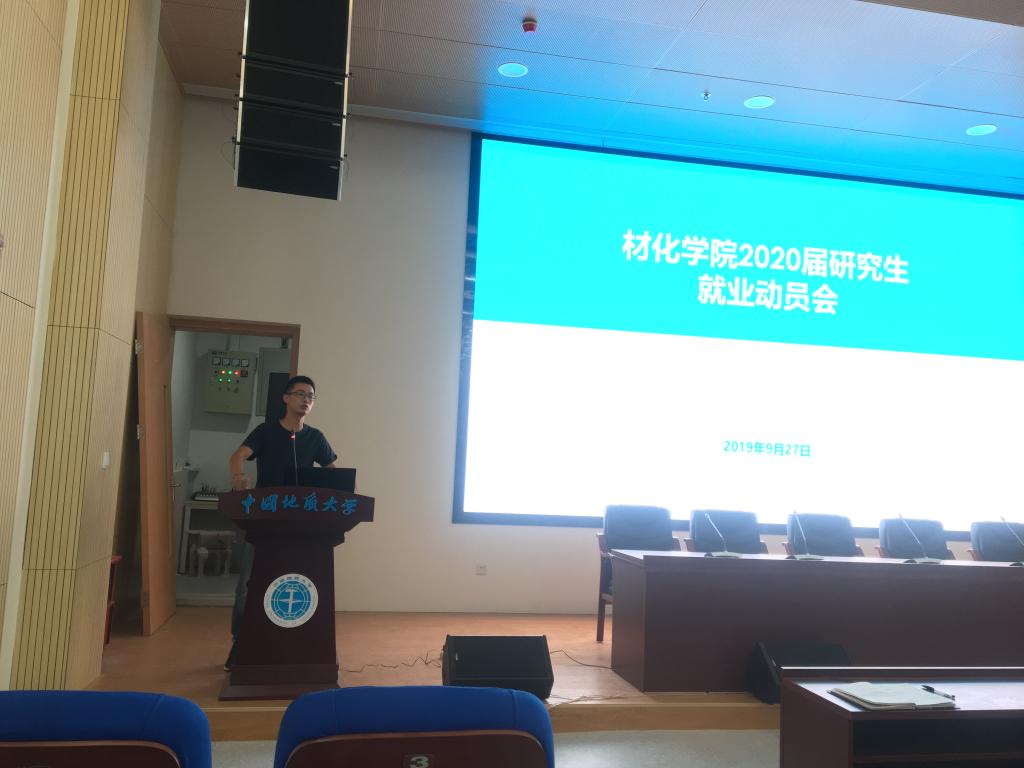 为进一步做好2020届研究生毕业生就业工作,2019年9月27日下午15:00,材化学院于110会议室举办2020届研究生毕业生就业动员大会。出席本次会议的有我院党委副书记余江涛、研究生辅导员唐伟,2017级硕士研究生以及部分博士生。