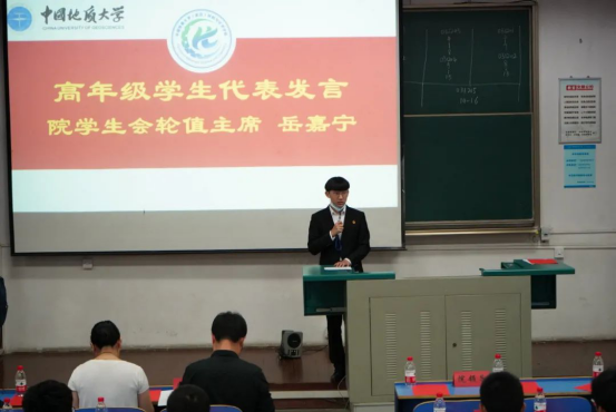 高年级学生代表、院学生会主席团轮值主席岳嘉宁表示,材化学院是学术氛围浓厚,活动影响广泛的学习圣地,他以自身学习和生活经历告诉学弟学妹们要加倍努力学习,塑造思想品德、提升综合素质。同时坦言道“大学不是同学们学习的终点而是一个崭新的起点,这就需要大家全面提高,全面发展,开拓出一片属于自己的海阔天空”。