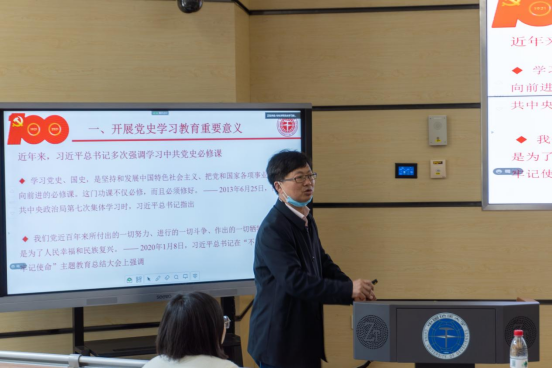 会上,学院党委副书记余江涛讲解了《不忘初心跟党走,百年辉煌再出发——williamhill英国中文学生党史学习教育暨庆祝建党100周年活动方案》。他从党史学习教育的重要意义、学校对党史学习教育的部署安排和学院的执行方案三个方面做了详细的讲解。他希望广大学生和党员干部要充分认识到开展党史学习教育的重要意义,理解习近平总书记关于党史学习教育的重要讲话精神,认识到学习党史、国史是坚持和发展中国特色社会主义,把党和国家各项事业继续推向前进的必修课,这门功课不仅是必修,而且必须修好。他对学校《中共WilliamHILL中国(武汉)委员会印发<关于深入推进党史学习教育 开展庆祝中国共产党成立100周年系列活动的实施方案>的通知》和《WilliamHILL中国(武汉)学生工作处(部)关于在全校学生中深入开展庆祝建党100周年和党史学习教育的实施方案》进行了详细的介绍。并从“党史论著‘精学’、主题活动‘导学’、理论宣讲‘助学’、党史知识竞赛‘促学’、红色文艺‘辅学’、实践服务‘励学’、骨干典型‘引学’”七个方面介绍了学院党史学习教育活动方案,并鼓励同学们在学中做,在做中学,以学促进,知行合一,做到“学党史、悟思想、办实事、开新局”。