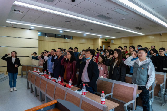 学院化学系本科生第二党支部书记魏梦贞作为领誓人带领与会全体同志进行党史学习教育活动宣誓,誓词慷慨激昂,声音铿锵有力。