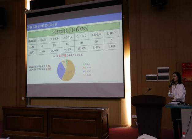 3月上旬,我院各年级陆续组织了2022-2023-1 学期学情分析,通过年级、班级、个案等维度,对本年级的学情进行了全方位、多层次的剖析,结合学校的学业要求与未来的形势规划,帮助同学们进一步提高学业认识,激发学习动力与潜能。