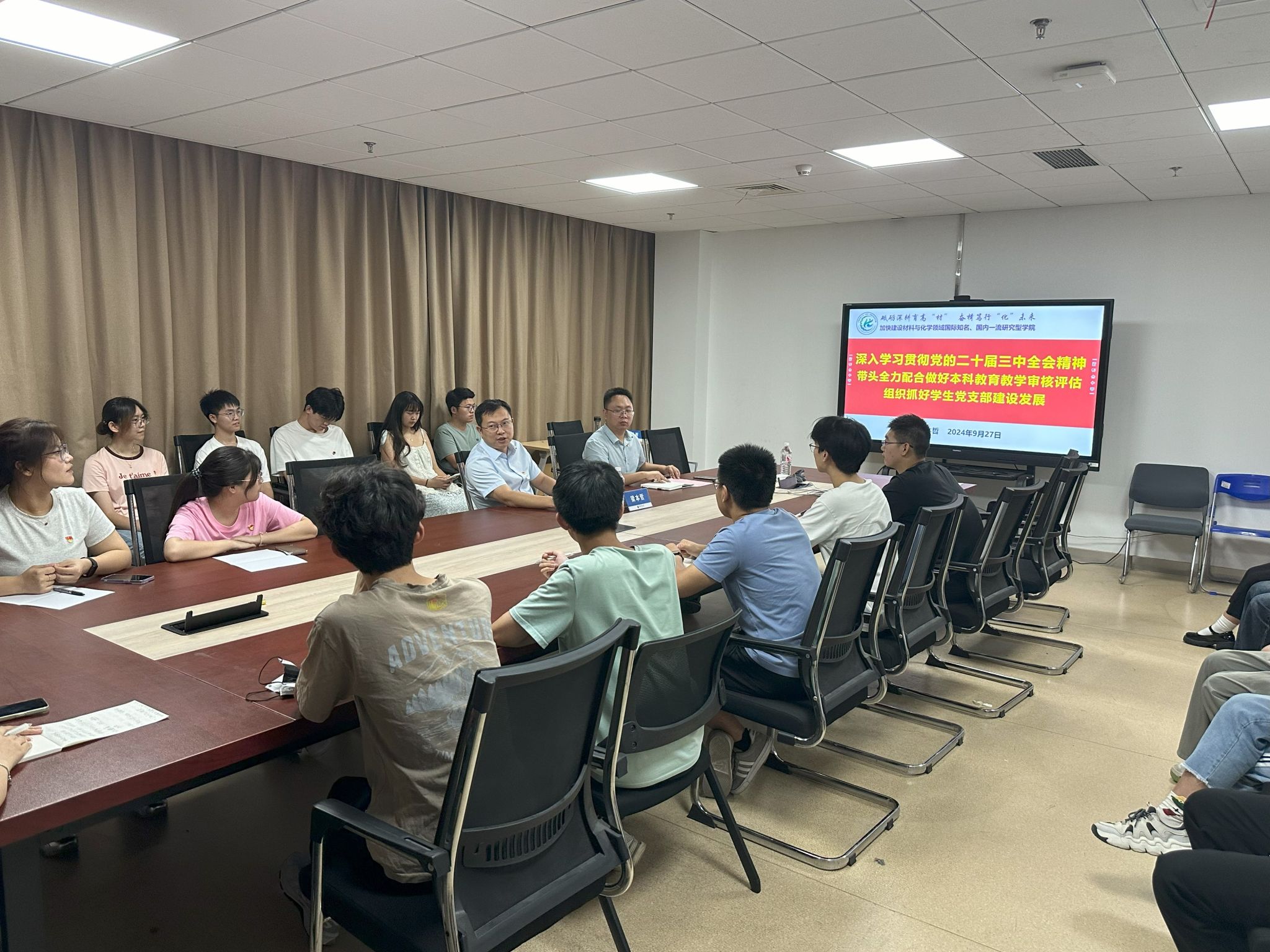 为深入学习宣传贯彻党的二十届三中全会精神,全力配合做好本科教育教学审核评估,持续抓好学生党支部建设,9月27日,学院举办第六期党支部书记论坛。学院党委书记梁本哲办公室主任曾成,本研全体学生党支部书记学院党建办公室成员参加本次论坛。