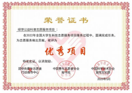 由于表现突出,近日,共青团中央、中国青年志愿者协会和中国科学技术协会联合授予“绿芽公益志愿服务队”全国大学生科技志愿服务“优秀团队”荣誉,授予“绿芽公益科普志愿服务项目”全国大学生科技志愿服务“优秀项目”荣誉。