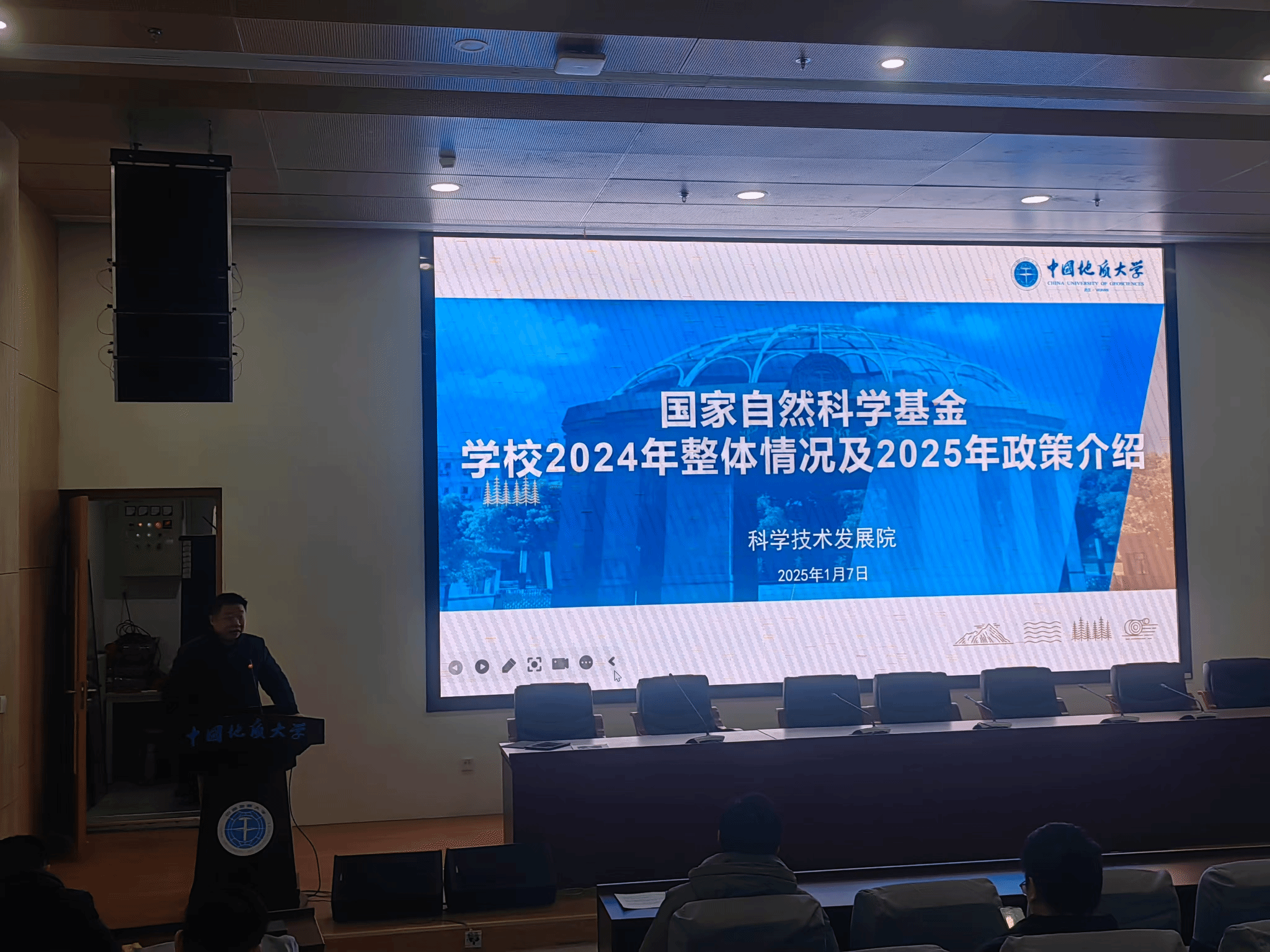 科发院副院长肖平作专题辅导报告。他详细介绍了学校2024年国家自然科学基金申报整体情况及2025年政策。他表示,我校2024年的整体情况稳中向好,目前国家自然科学基金委进一步加大了经费投入力度,支持的项目和资助的通过率也大为增加,希望各位老师认真思考,开拓思路,抓住机遇,积极申报。