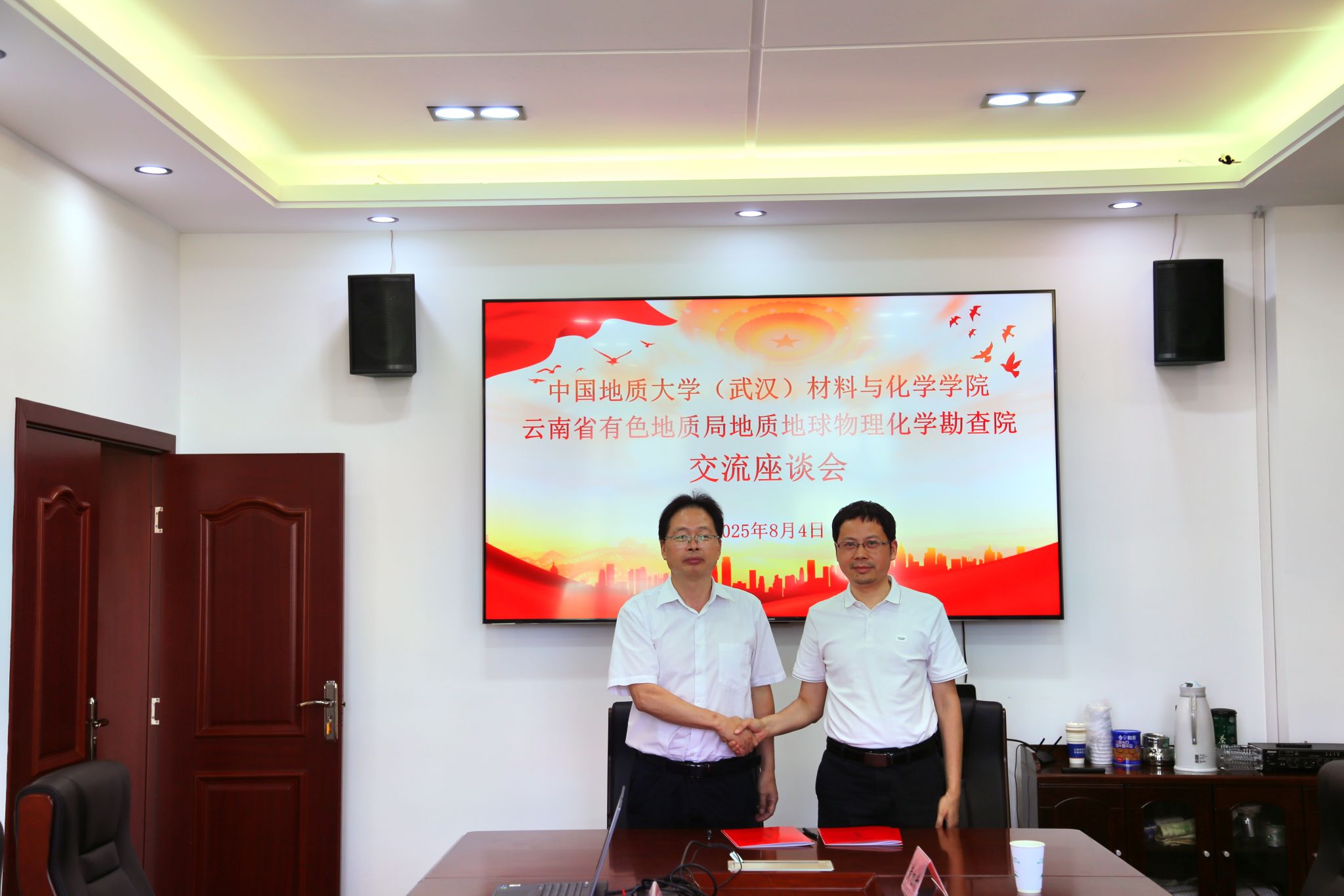 为深化产教融合,拓展实践育人平台,8月4日,学院院长胡兆初、教师代表鲍征宇、鲁立强、田欢和学生代表黄旭升赴云南省有色地质局地质地球物理化学勘查院(以下简称“物勘院”)开展专题调研交流,并举行共建“本科卓越工程师培养计划培训基地”挂牌仪式。