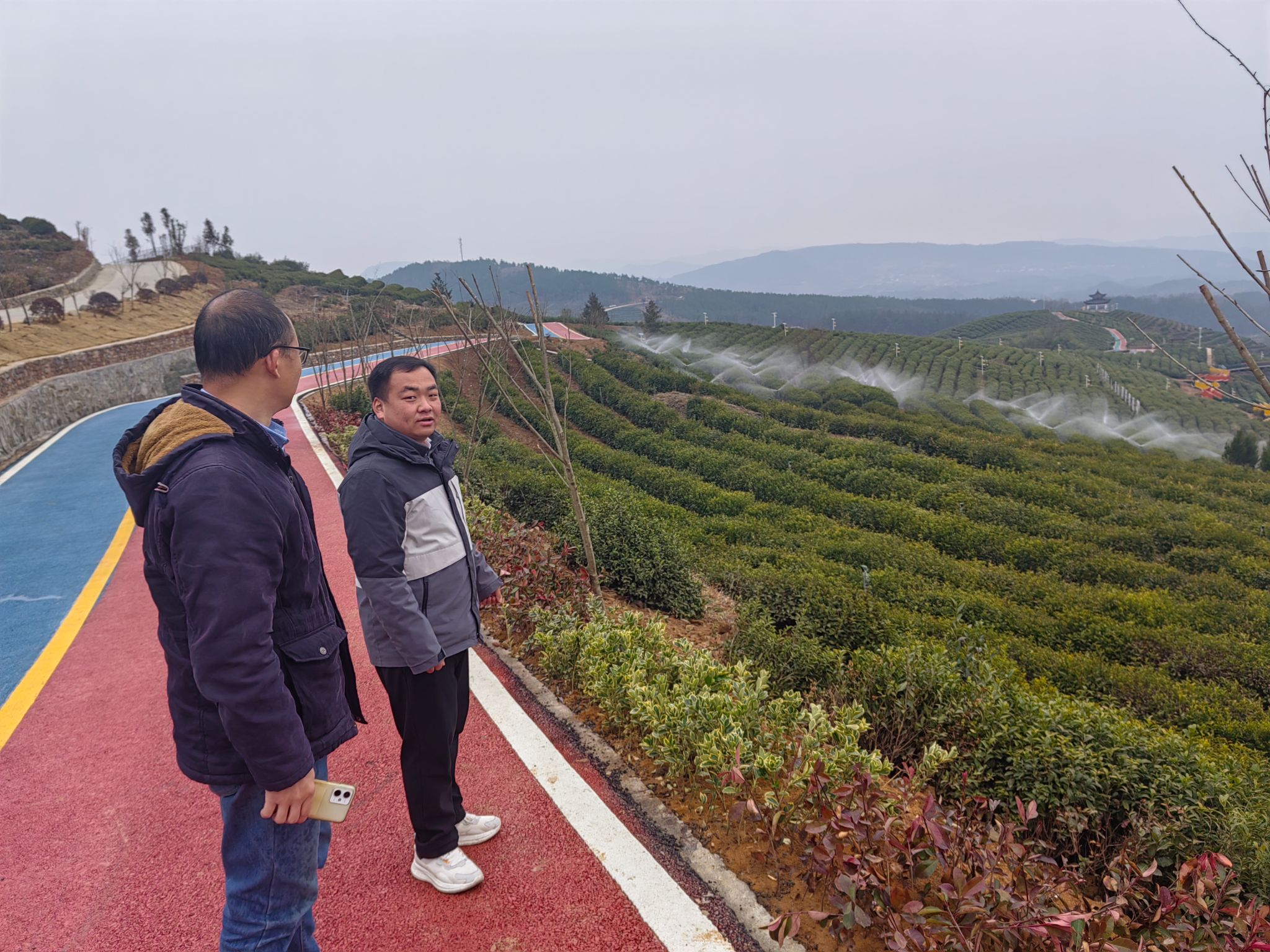 车华超给宝丰镇领导介绍项目茶园富硒情况