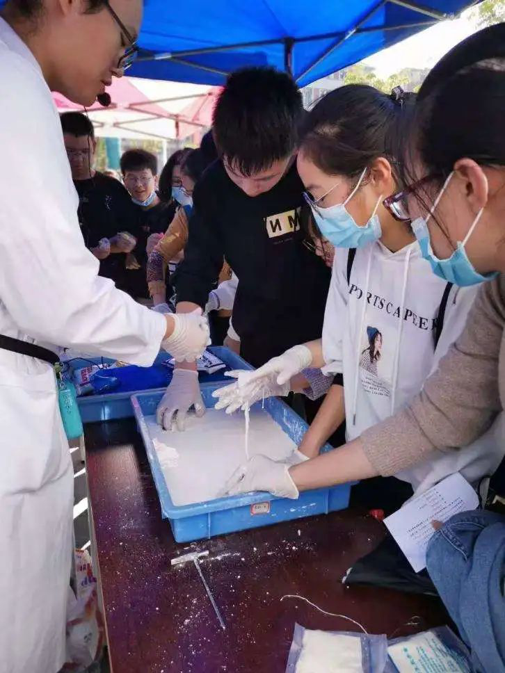 这是一场奇妙的化学之旅,观众们亲手制作了形状各异的滴胶饰品,个人专属版的香膏,体验了“遇强则强,遇弱则弱”的非牛顿流体,欣赏了奇妙的海底世界,感受了手握星落许愿瓶,在“许愿树”前许愿的双倍快乐……