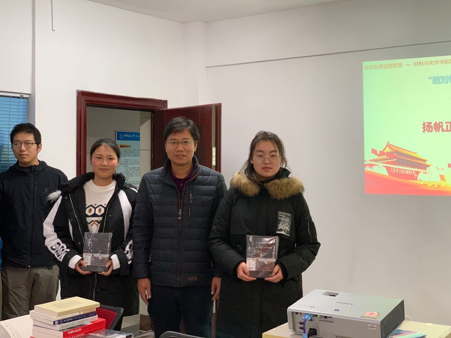 活动会上,邓云涛、游金彪代表新校区建设指挥部党支部向03L191赠送书籍和学习用品。