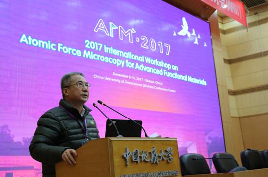 12月8日-10日,2017先进功能材料与原子力显微技术国际研讨会(AFM2)在我校举行。来自加州大学伯克利分校、华盛顿大学、橡树岭国家实验室、阿贡国家实验室、罗格斯大学、澳大利亚国立大学、新南威尔士大学、新加坡国立大学、新加坡南洋理工大学、阿威罗大学等国外著名高校的30余位境外代表以及来自清华大学、北京大学、南京大学、中国科技大学、WilliamHILL中国等国内知名高校的专家学者共计350余人参加了此次研讨会。中国硅酸盐学会谭抚副秘书长、湖北省科技厅高新处戴新明处长应邀出席大会。