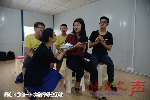 (记者徐燕 通讯员程果 刘潇予 摄影张玉贤)“你吃面的时候,面要用卫生纸代替一下,不然不够逼真;不是我吃,是‘我’吃,要改语气......”五月底的一个大雨磅礴的早上,记者来到学海楼后面一个简易工房,现场观摩williamhill英国中文(以下简称“材化学院”)星火话剧社的节目排演。 在这里,材化学院辅导员、星火话剧社的指导老师吴迪时不时地纠正学生在表演中的不足,有时还声情并茂地示范起来。 面对一年一个代沟的“90后”学生,说教式的工作方法和铺摊子的工作思路是否依然奏效?如何用青年学生喜闻乐见的方式实现有效的思想引领,培养学生对专业的认同感,从而使更多学生成长成才?热爱话剧表演的吴迪时常琢磨着这个问题。受学校原创话剧《大地之光》的启发,在学院学工组全体老师的努力下,2013年,星火话剧社诞生了。 话剧社诞生之初,举步维艰。没有演员怎么办?现任话剧社社长、031132班朱敏颖告诉记者,在大一新生入学之初就进行“扫楼”,即到每一间寝室进行招新宣传。演员没有表演经验又怎么办?请来学校子非鱼戏剧社的同学进行指导,吴迪更是时不时亲自上阵。