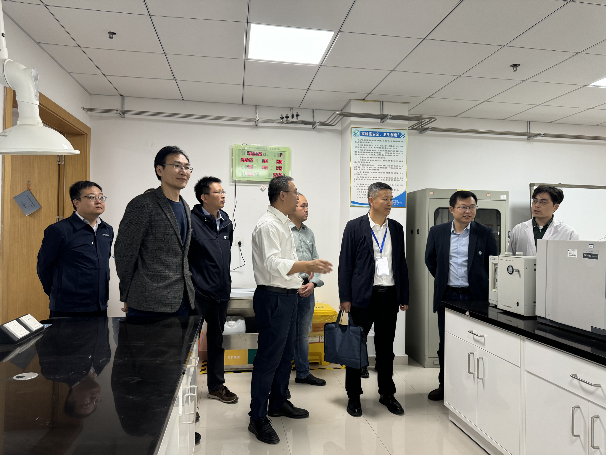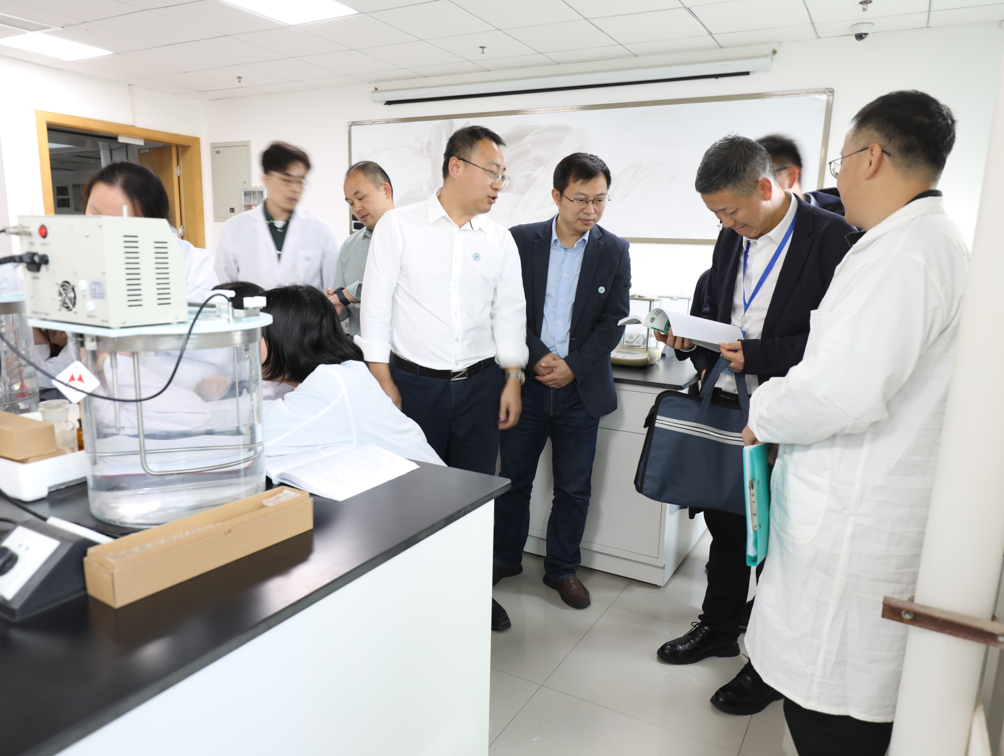 裴校长还现场观看了物理化学实验课授课情况,并与授课教师洪建和进行交流,了解实验内容和实验教材建设情况。