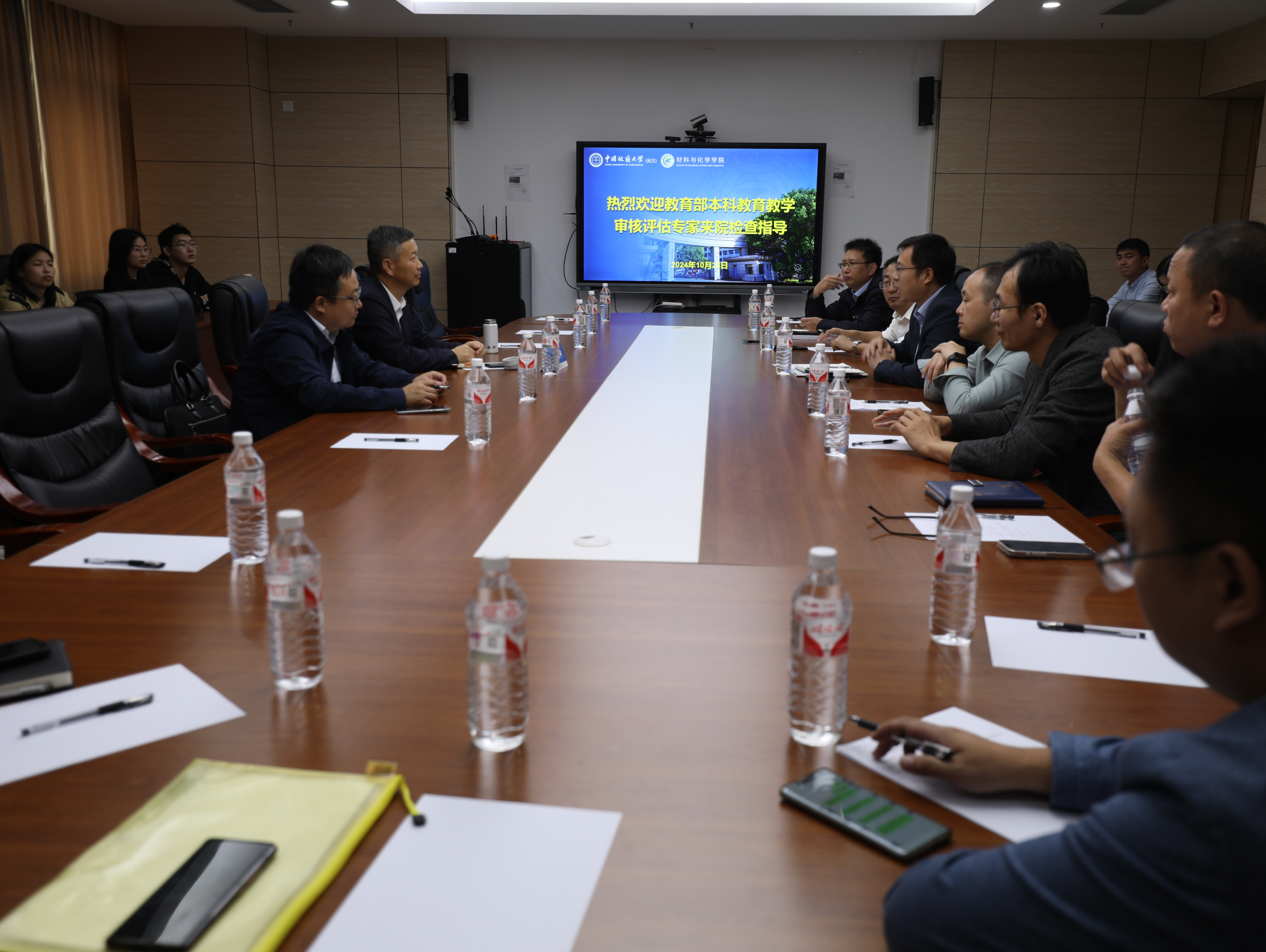 2024年10月28日,教育部本科教育教学审核评估专家组成员、长安大学党委常委、副校长裴建中到学院检查指导本科教育教学工作。专家组联络员、资源学院党委书记高复阳,学院全体二三级班子成员、专业负责人、教学秘书、辅导员及学生代表等参与检查并与裴校长座谈交流。