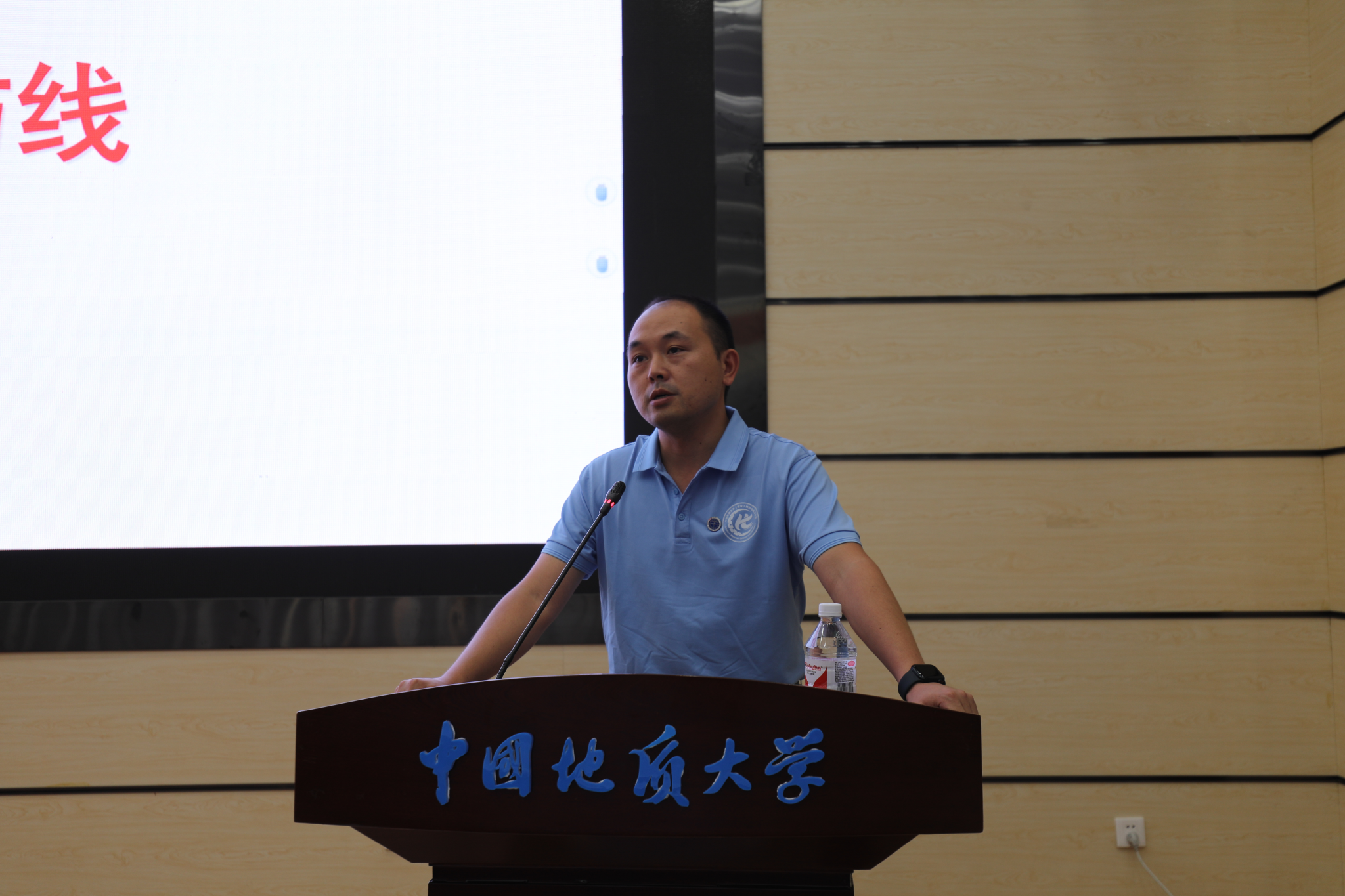 在校生代表、2022级博士研究生车华超发言。他回顾了自己在地大学习生活十年的感悟,他希望同学们在研究生学习中能够正确面对不确定性,沉住气慢慢来,大胆质疑,细心求证,将科研成果有效融入国民经济和社会发展中,把论文写在国家大地上,争做新时代有为地大材化人。