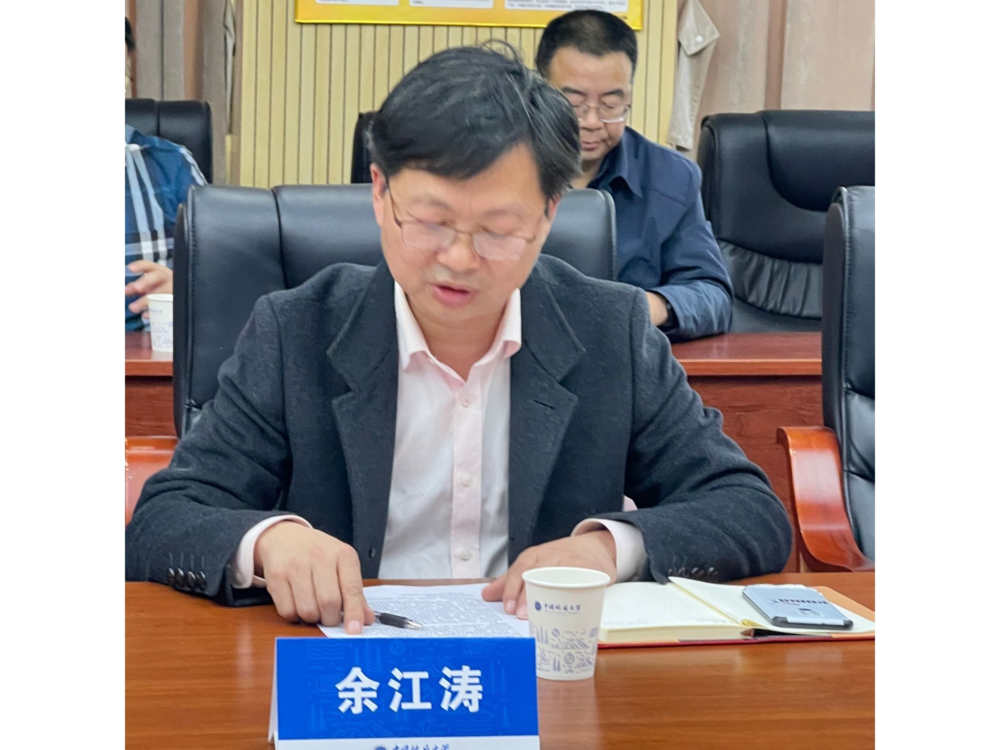 原学院党委副书记余江涛发表离任感言。他回顾了在学院5年来的重点工作,对学院领导、老师和同事们的关心和指导表达了感谢,祝愿学院未来更加光明璀璨。