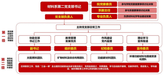 材料系第二党支部成立于2013年,现有正式党员24名,全部具有博士学位,其中教授10人、副教授14人、博导5人。支部书记马睿教授是地大第一批“摇篮计划”入选者,曾获评学校第十一届“十大杰出青年”、首届地大最美教工,另获评“校级优秀党务工作者”3次、“院级优秀共产党员”1次、“院级优秀党务工作者”1次。自2013年9月担任支部书记以来,带领支委积极探索“党建+教学科研”实践,积极开展特色鲜明、意义深远的支部特色活动,让党支部的主体作用始终贯穿于教育教学、科学研究、管理服务全过程,团结支部全体成员积极发挥政治引领作用,争当学科发展尖兵和教育教学骨干。支部在马睿同志的带领下,其建设发展形成的做法及经验主要体现在以下五个方面。