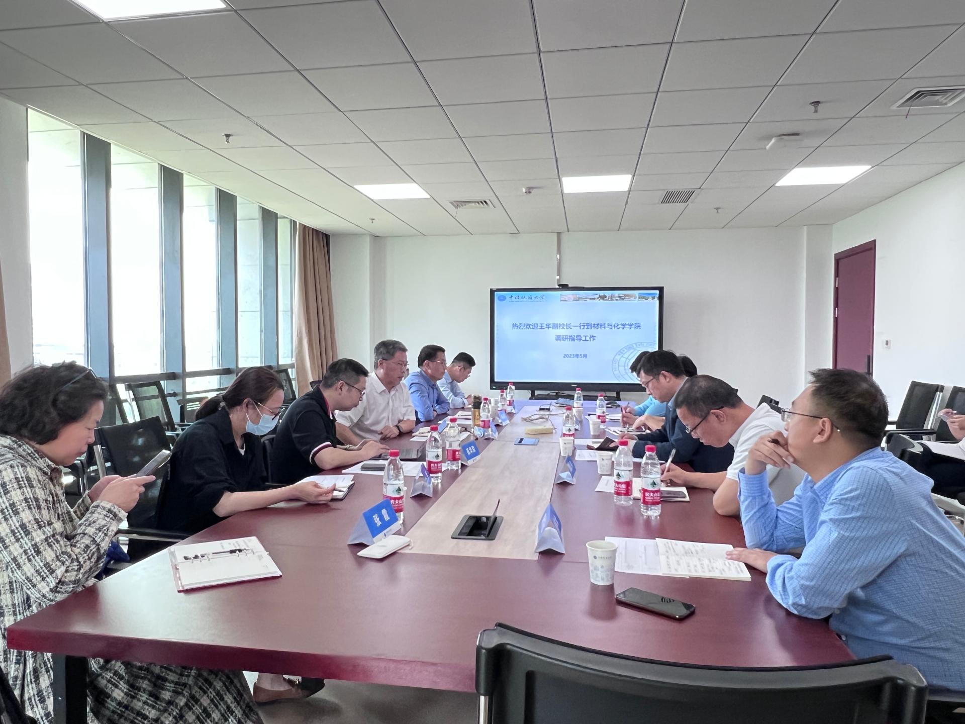 王华副校长指出,此次到学院调研,不仅是为了了解掌握学院有关工作的推进情况,更多的是听取困难、意见及建议,同时也为了更好地促进机关部门与学院的沟通。他表示,座谈交流很充分,起到了双向调研的效果。他结合学院实际,对学院深化产教融合、推进有组织教研等工作提出建议,强调要在学生培养和社会合作工作中加强长远谋划,注重广泛调动和发挥专业教师的积极性和能动性,全员参与,共同做好拓展汇聚校内外资源工作。他期待,材化学院通过努力,将来要成为学校又一张亮丽的名片。