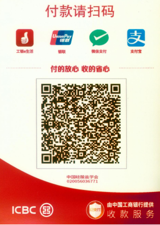 六、会议注册及防控要求 (1)会议注册费 1800元/人(含餐费、场地费、会务费、会议资料费、茶歇、会议专项服务费等费用;2021年9月25日前汇款注册的收取1500元/人);在校学生凭学生证参会收取800 元/人。住宿费自理。请汇款至下列账户或扫描下方二维码,并由中国硅酸盐学会开具发票。 转账请务必注明“矿材+姓名”,汇款后请尽快将汇款回执(截图)及开票信息发送至邮箱13466774499@163.com。 汇款账号:0200001409014435189 户名: 中国硅酸盐学会 开户银行:中国工商银行北京百万庄支行